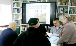 Тематический час «Открытия, которые потрясли мир» посвящён науке, открывающей бесконечный мир познания, творчества и мечты. Участники узнали о первых изобретениях человека, приняли участие в опытах, на практике проверили научные открытия.
